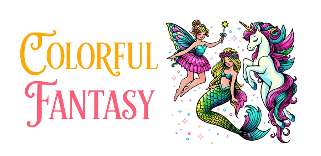 Colorful Fantasy: Fairies, Mermaids, and Unicorns Coloring Book